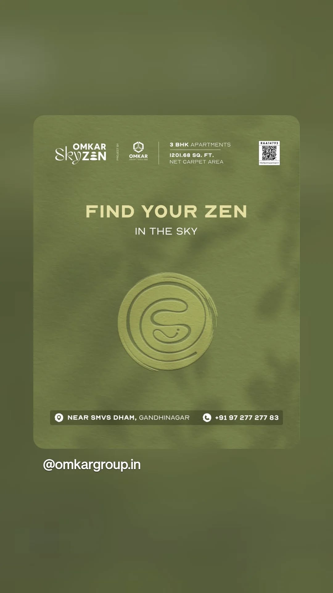 A home that rises above the chaos and settles into calm Omkar Skyzen designed for balance and calm Near SMVS Dham Gandhinagar 91 9898 343 342