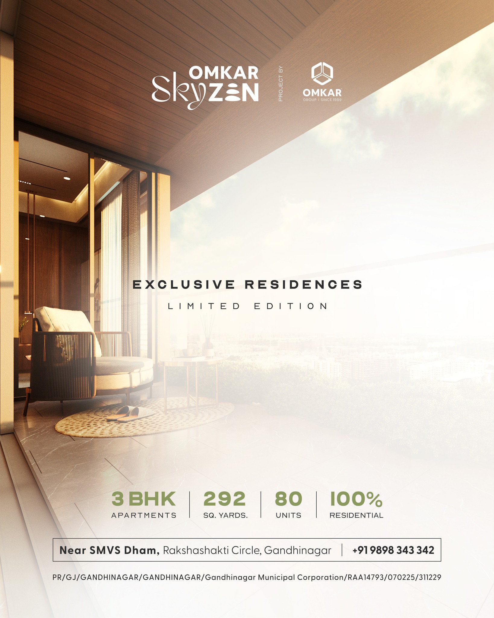 Live a lifestyle that breathes calm Omkar Skyzen it s your destination to find your Zen in the sky with us Near SMVS Dham Gandhinagar 91 9898 343 342