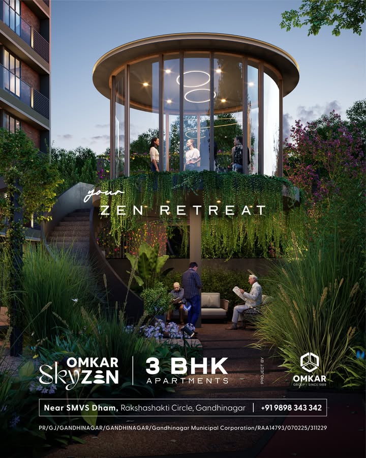 Omkar Skyzen a creation beyond walls It s a landmark that will redefine Gandhinagar s skyline 3 BHK luxurious apartments Near SMVS Dham Gandhinagar 91 9898 343 342