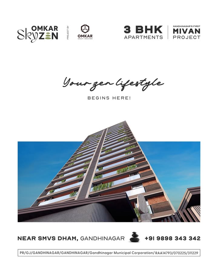 #omkar #omkarskyzen #omkargroup #luxurious3bhk #findyourzen #innerpeace? #3bhkhomes #3bhkapartments #greenbuildingproject #greenliving #smvsdham #gandhinagar #zen #zenmode