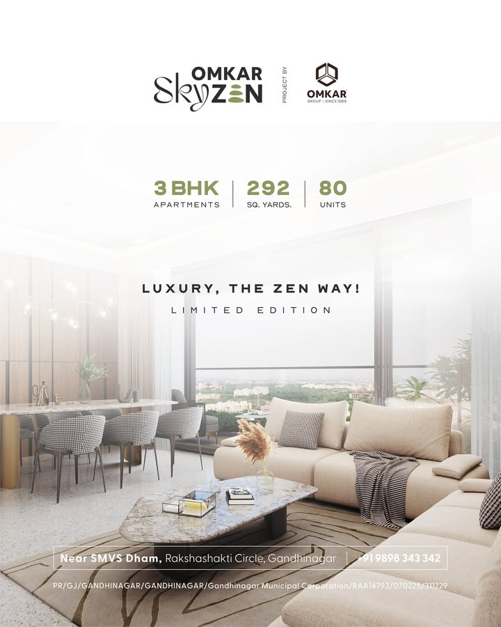 #omkarskyzen #omkar #omkargroup #3bhkhomes #3bhk #luxuriousapartments #smvsdham #gandhinagar #mivanconstruction #mindfulness #80units